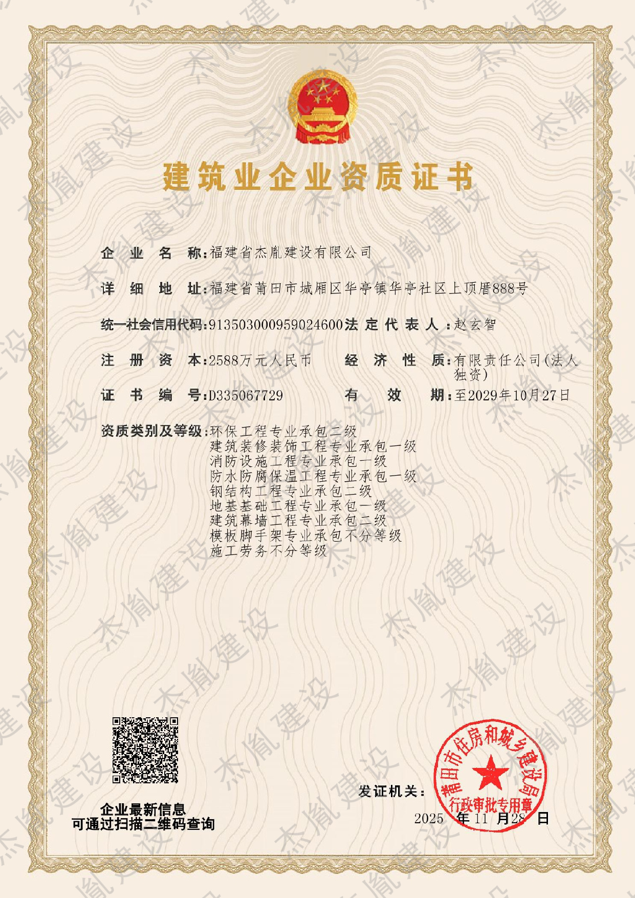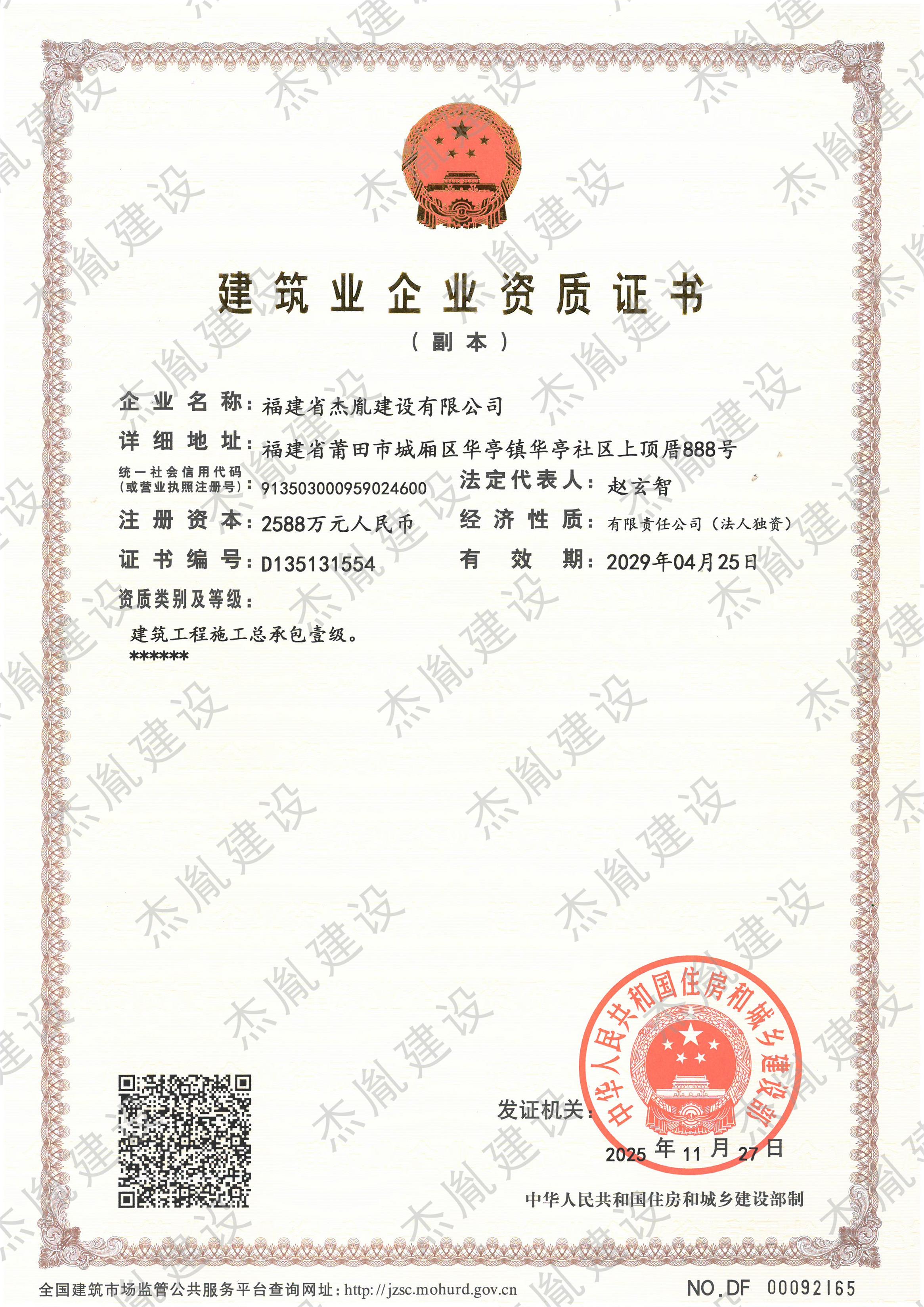 建筑工程施工总承包壹级资质