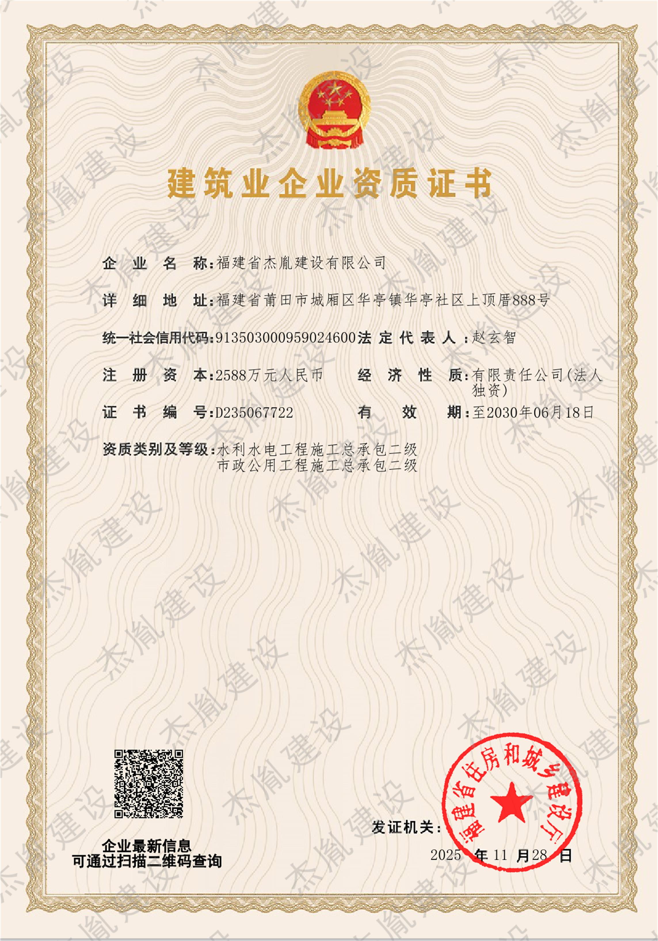 水利水电工程施工总承包二级