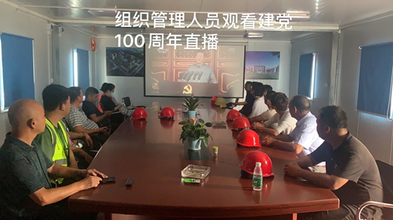 庆祝中国共产党成立100周年大会今日上午8时在北京天安门广场隆重举行,我司承建的“三明市委党校迁建项目”组织管理人员集中观看庆祝中国共产党成立100周年大会,共同祝福伟大的党带领中国人民迈进新征程、奋进新时代。管理人员纷纷表示将深入学习习近平总书记重要讲话精神,切实把思想和行动统一到党中央决策部署上来,用党的思想指导建设工作,将习近平总书记重要讲话精神传达到现场每位工人。